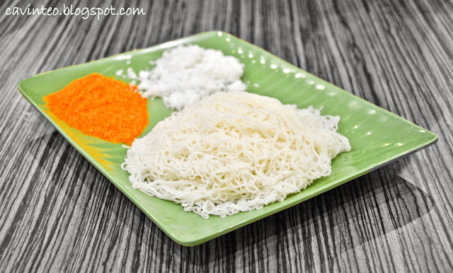 The freshness really made a big difference; the strings didn't stick to each other as was usually the case for putu mayam that were packed for home / left unattended for long period of time. That's not all; even the coconut tasted freshly grated and as it was just taken out from the refrigerator, there was that coolness that complemented the hot putu mayam very well.