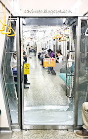 Train cabin! And you know what hit us when we stepped in? The quietness which was strange and weird given that Singapore's trains were commonly filled with people chatting with each other, playing the games in the phone or even playing music from their devices!