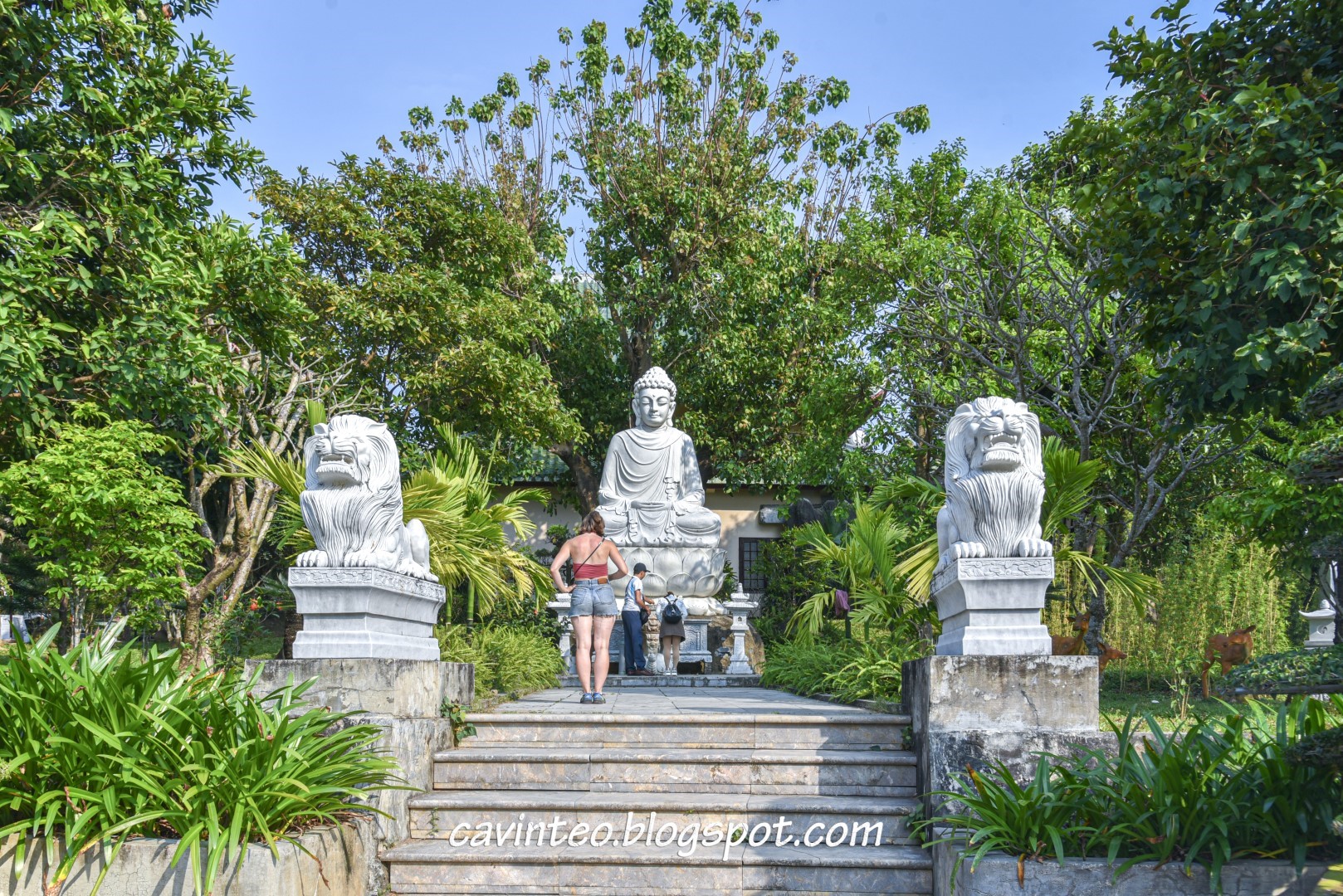 Empty Kim Son Bao Thang Pagoda; even though some visitors would make their way down via the stairs, I am guessing that most would just fork out extra dough for the return ticket using the funicular train instead. On one hand, the covers helped to protect the pagoda's architecture, although on the other hand, it would also protect the heads of tall individuals from any potential injury and insurance claim. No issue for shorties like me.
